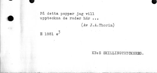 //// På detta papper jag vill //// •uppteckna de rader här ... //// fpv //// (Av J.A.Thorin) //// 1 l V //// E 1381 e" //// t //// bx-' ^ . . v&S vy}'/•'/¦ i ¦ //// KB:S SKILLINGTRYCKSREG. //// .U'- , ' ¦ i • ' //// te å- //// ¦ //// iåfaki___*___^Mur^s^^Juåu—---^--- -—---—--- —---... - - — --- ---—- —---—---^--- ////
