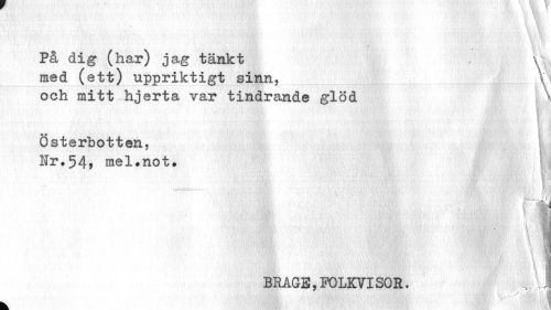 //// På dig (har) jag tänkt V //// med (ett) uppriktigt sinn, V och mitt hjerta var tindrande glöd //// Österbotten, . 1 Wm& I i //// Nr.54» me1•no t. f1 //// Si ,* Wl ; i //// tiå //// v //// f //// \ 1 //// i ' \ i BRAGE,FOLKVISOR. . I //// WMtuå ////