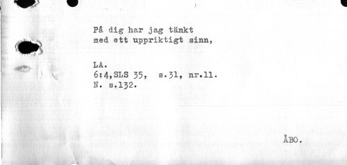 //// På dig har jag tänkt //// JBfe; med ett uppriktigt sinn //// \ 6:4>SLS 35, s.31, nr*11. //// N. s,132. //// ÅBO. //// ' i ¦ ¦¦ . /J . , ® / '<.'» ..¦./¦ 1 . i ¦ ////