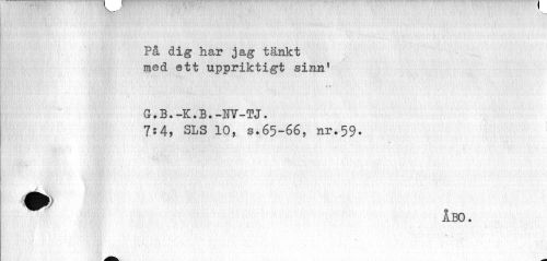 //// På dig har jag tänkt //// med ett uppriktigt sinn1 //// < n //// G.B.-K.B.-FV-T J. //// 7:4, SLS 10, s.65-66, nr.59. //// f 1 ¦ ¦ 1 • //// ^^ ÅBO. ////