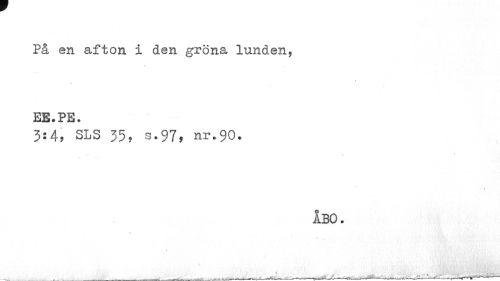 //// På en afton i den gröna lunden, //// ¦ //// EE.PE. //// 3:4, SLS 35, s.97, nr.90, //// ÅBO. //// « //// i ,» ////