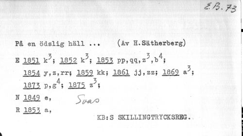 //// I //// På en ödslig häll ••» //// (Av H»Sätherberg) ' //// ? //// - _ . i * . \ //// E 1851 k^; 1852 k^; 1855 pp,qq,z^,b4; j //// 1854 y,z,rr; 1859 kk; 1861 jj,zz; 1869 a; 1875 p,g% 1875 z5; //// ^ ' KB:S SKILLINGTRYCKSREG. //// ! ////