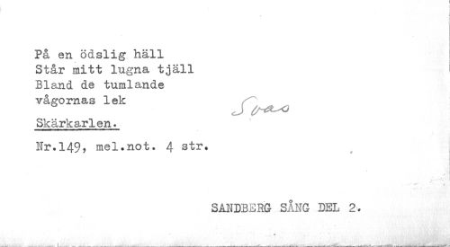 //// På en ödslig häll j //// Står mitt lugna tjäll I //// Bland de tumlande vågornas lek //// Skärkarlen* //// Hr.149> mel.not. 4 str» //// ¦ //// SANDBERG SÅNG DEL 2. //// ... //// 1 * _ »åPWjtJå //// - - i--- — i---i *... -___,___d___.—^ ___i..._ _. _ - ___i___jmnkW ////