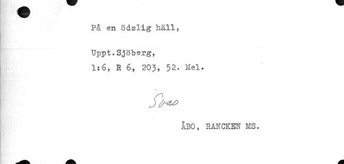 //// På en ödslig häll, //// Uppt•Sjöberg, //// 1:6, K 6, 203, 52. Mel. //// » //// ÅBO, RMCKEN MS. ////