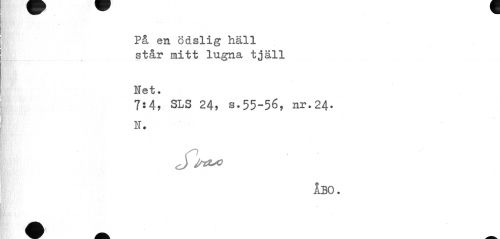 //// På en ödslig häll //// står mitt lugna tjäll. //// Het. //// 7:4, SLS 24, s.55-56, nr.24. N. //// <J t^0 //// ÅBO. ////