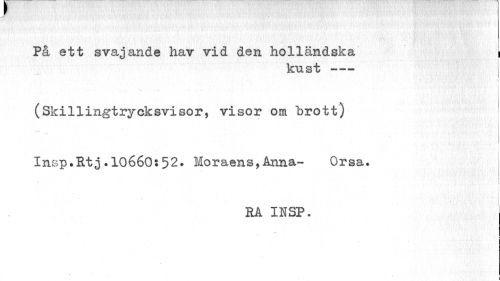 //// t //// På ett svajande hav vid den holländska \ //// kust---i //// i //// i //// (Skillingtrycksvisor, visor om "brott) //// i //// Insp.Rtj .10660:52. Moraens, Anna- Or sa. //// j //// ^ //// i //// RA INSP. //// I //// b //// i ////