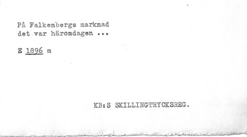 //// På Falkenbergs marknad //// det var häromdagen . • % //// e 1896 m //// KB:S SKILLINGTRYCKSBEG. ////
