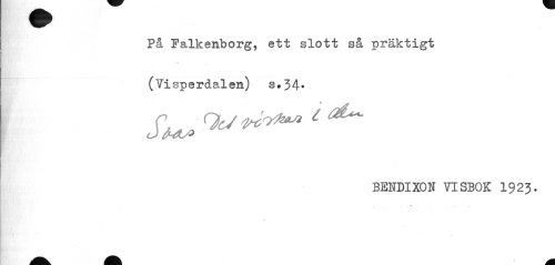 //// På Falkenborg, ett slott så präktigt //// ¦i» //// (Visperdalen) s#34* //// BENDIXON VISBOK 1923. //// # ////