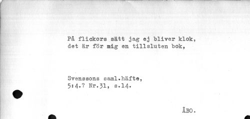 //// * //// På flickors sätt jag ej bliver klok, det är för mig en tillsluten bok, //// Svenssons saml.häfte, //// 5:4.? Nr.31, s.14. //// ÅBO. ////