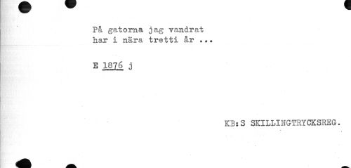 //// På gatorna jag vandrat har i nära tretti år ... //// e 1876 j //// KBjS skillingtrycksreg. //// 4 ////