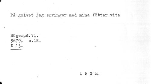 //// På golvet jag springer med mina fötter vita //// Högerud. VI. //// 3679, s.18. //// D 15. ... "** //// § //// I F G H. //// k ////