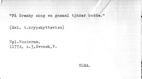 //// "På Grenby skog en gammal tjäder bodde." . //// ( Me 1. t.kryp sky11 evi s a) //// t ' • //// Upl.Fasterna, 11774, s.3,Svensk,V. //// 1 //// i //// ULMÅ. } //// ! //// I ////