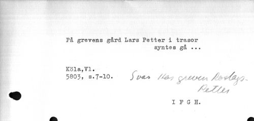 //// - //// På grevens gård Lars Petter i trasor //// syntes gå //// Kola,VI* //// 5803, s.7-10. J IHI* //// ^^ I F G H. ////