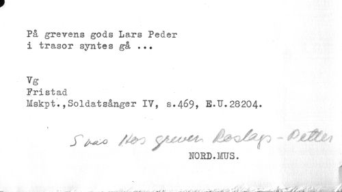 //// På grevens gods Lars Peder i trasor syntes gå //// Vg //// Fristad //// Mskpt.,Soldatsånger IV, s.469, B.U.28204- //// S^O /fao G/UOM* É^Q/^P ~ ^iMll //// NOBD.MUS. //// A /' r ' , >> > lfÅ //// ^ * * A , k % JSKl-^^Li-ä, ////