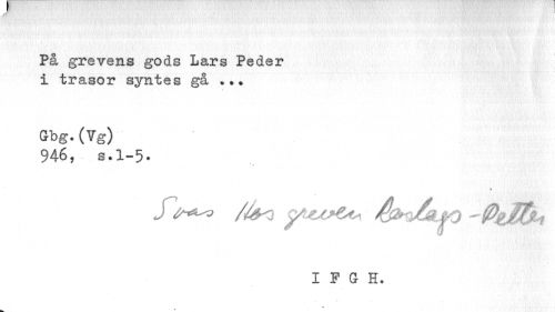 //// På grevens gods Lars Peder i trasor syntes gå //// Gbg.(Vg) //// 946, s.1-5» //// a //// I F G H. ////