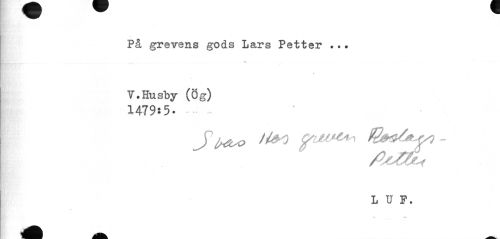 //// I //// * //// På grevens gods Lars Petter ? . • //// v //// T.Husby (Ög) //// 1479:5- - //// LO, ////