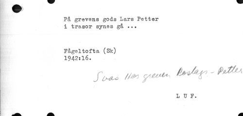 //// På grevens gods Lars Petter i trasor synes gå ... //// Fågeltofta (Sk) 1942:16. //// Si*. ' ****** //// ) //// L U P. ////