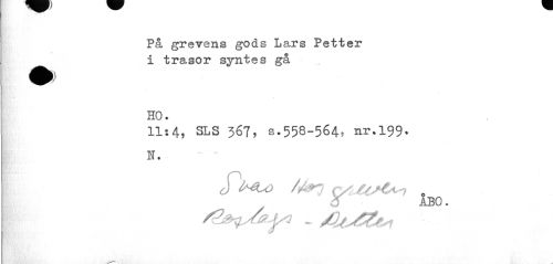//// På grevens gods Lars Petter i trasor syntes gå //// / //// HO. //// 11:4, SLS 367, s.558-564. nr.199. //// N. ' " //// ÅBO. //// \ ////