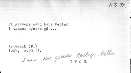 //// i //// i //// f //// I //// i i //// På gravens gård Lars Petter i trasor syntes gå .•. //// i //// I i //// Artemark (Dl) i //// 1201, s.20-25* pjjfa //// I l //// i ////
