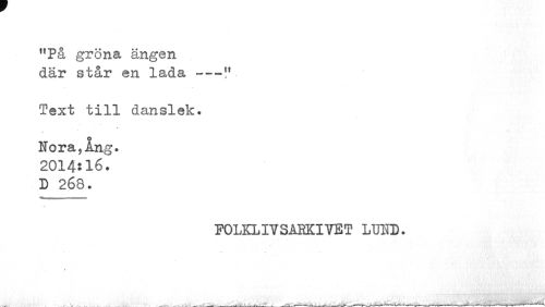 //// HPå gröna ängen där står en lada---!f //// Text till danslek. //// t //// Hora,Ang. 2014*16. D 268. //// FOLKLIVSARKIYET LTJ1D. //// _ ___ . ... _ . ___•--» ////