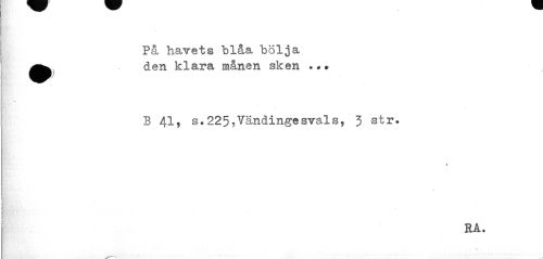 //// På havets blåa bölja //// • den klara månen sken //// r //// B 41, s. 22 5? Vändinge svals, 3 str* //// RA. ////