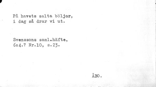 //// I //// På havets salta böljar, i dag så drar vi ut. //// i //// i //// Svenssons saml*häfte, //// 6:4.? Nr.10, s.23. i //// i 1 //// ! //// ÅBO. //// * ////