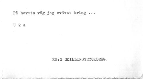 //// På havets våg jag svävat kring U 2 a //// KB:S 5KILLINGTRYCKSREG. ////