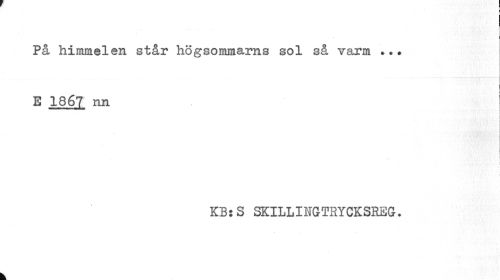 //// På himmelen står högsommarns sol så varm E I867 nn //// | //// KB:S SKILLINGTRYCKSREG. //// k ////
