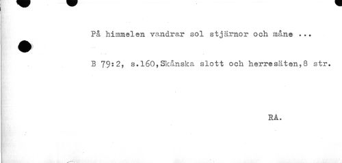 //// På himmelen vandrar sol stjärnor och måne ... //// ... V . //// B 79*2, s.160,Skånska slott och herresäten,8 str. //// 1 //// RA. //// » ////