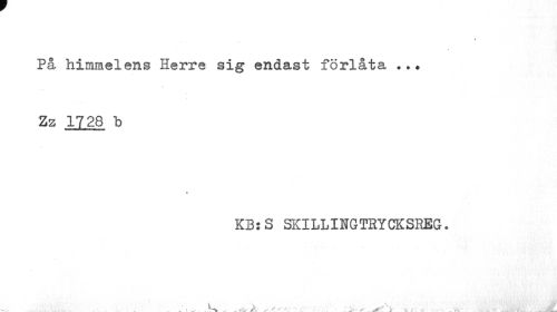//// I //// På himmelens Herre sig endast förlåta ... Zz 1728 b //// t //// KB:S SKILLINGTRYCKSREG. //// , . L. ... X' , ? * *'" '. j*? j/m: ////