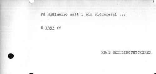 //// • . //// t //// På Hjälmarro satt i sin riddaresal //// . i //// ¦ //// ¦ //// E 1893 ff //// mmtmmmmmmmtm //// i*. . : //// KB:S SKILLINGTRYCKSREG. ////
