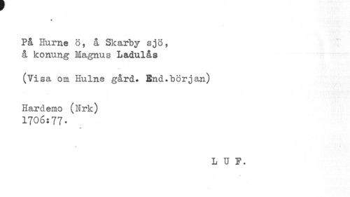 //// I //// M //// i //// På Hurne ö, å Skarby sjö, //// å konung Magnus Ladulås //// #» //// (Visa om Hulne gård. End.början) Hardemo (Nrk) //// 1706:77. //// ID!. ////