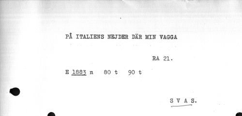 //// PÅ ITALIENS NEJDER DÄR MIN VAGGA //// RA 21. //// E 1885 n 80 t 90 t //// ¦ //// m //// Hr //// S V A S. ////