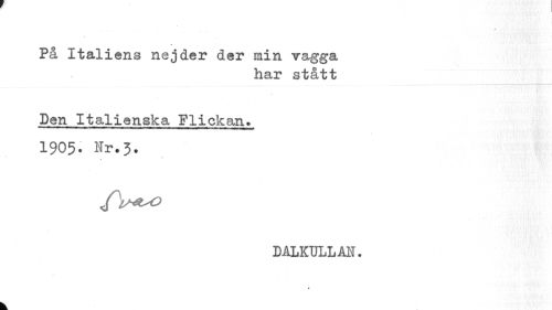 //// / //// På Italiens nejder der min vagga //// har stått //// Den Italienska Flickan» //// TTT-* —¦ »I -»IHWI--Mt IMHni II. mil — ¦! fl ¦ U //// 1905. Nr.3. //// DALKULLAN. //// * //// V ////