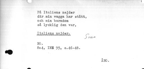 //// * , //// På Italiens nejder där min vagga har stått, och min barndom så lycklig den var, //// Italiens nejder* BO. //// 8:4, INB 99, s.46-48. //// ÅBO. ////