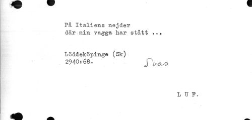 //// På Italiens nejder där.min vagga har stått //// Löddeköpinge (Sk) //// 2940:68. /W> //// L U P. ////