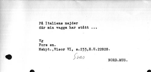 //// » //// På Italiens nejder //// där min vagga har stått ..• //// Vg //// Pors sn. //// Mskpt.,Visor 71, s.235>E.U.22828. //// ^ NORD.MUS. ////
