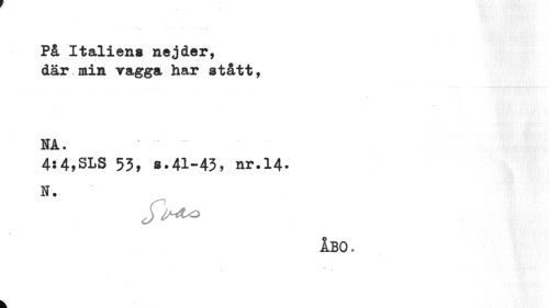 //// På Italiens nejder, där.min har stått. //// f //// NA. //// 4:4,SLS 53, s.41-43, nr.14. //// N. //// ÅBO. //// i. //// k. ////