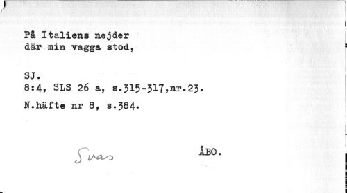 //// I //// På Italiens nejder //// där min vagga stod, : //// i //// SJ. //// 8:4, SLS 26 a, s.315-317,nr.23. N.häfte nr 8, s.384. //// 1 //// j ^ ÅB0' i //// I //// s //// ¦ //// = //// I ////