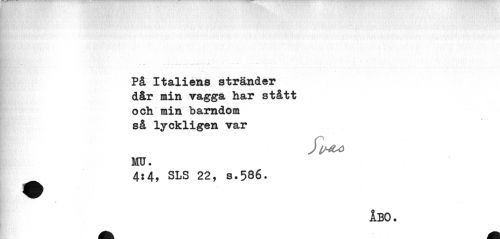 //// På Italiens stränder dår min vagga har stått och min barndom så lyckligen var //// MU. //// 4:4, SLS 22, s.586. //// f //// ÅBO. ////