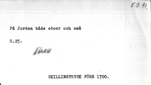 //// • i //// i //// i i i //// På Jorden både stoor och små //// s.25. //// 0m //// r //// SKILLINGTRYCK FÖRE 1700. ////
