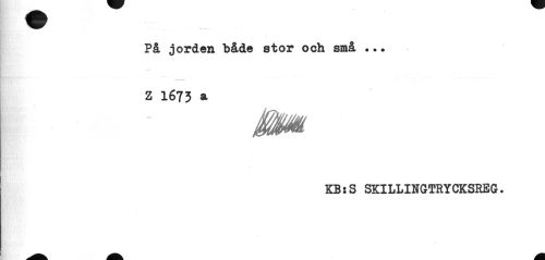 //// På jorden både stor och små ... //// Z 1673 a //// åm //// KBsS SKILLINGTRYCKSREG. ////