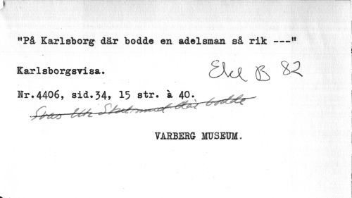 //// "På Karlsborg där bodde en adelsman så rik —-tt j //// Karlsborgsvisa. //// » * //// Hr. 4406^3 i d. 5 4, //// VARBERG MUSEUM. //// J //// i //// 1 ////