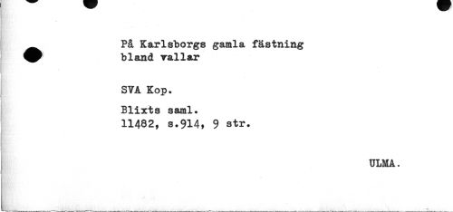 //// ^ På Karlsborgs gamla fästning //// bland vallar //// SYA Kop* Blixts saml. //// 11482, s.914, 9 str, //// ULMA. //// i //// » ////