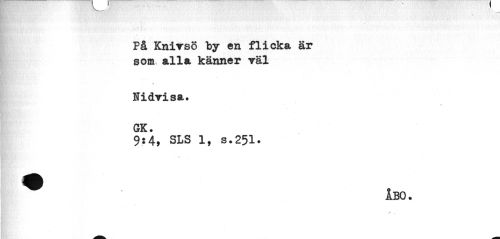 //// < //// På Knifsö by en flicka är som, alla känner räl //// \ //// lidrisa. //// % //// GK. //// 9$4, SLS 1, s.251. //// ÅBO. ////
