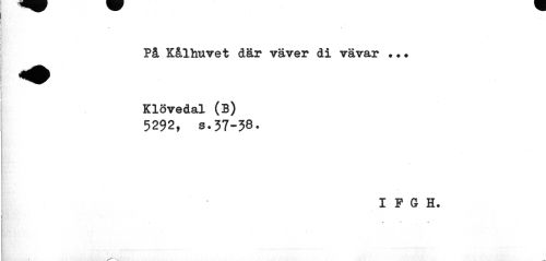 //// På Kålhuvet där väver di vävar ... //// Klövedal (B) 5292, s.37-38. //// I P a H. //// ... r. •*.. -i ////
