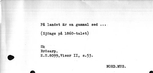 //// På landet är en gammal sed ... (Sjöngs på 1860-talet) //// Sk //// Brösarp, //// ^ E.U.8099,Visor II» s.53* //// NOBD.MUS. ////