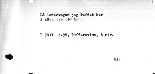 //// På landsvägen jag luffat har i nära trettio år ... //// B 98:1, s*98, Luffarevisa, 6 str. //// * //// « ////