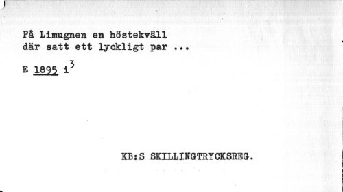 //// ¦ • ' . , • //// På Limugnen en höstekväll där satt ett lyckligt par • * • //// E 1895 i5 //// l j //// » i //// I i //// KB:S SKILLINGTRYCKSEEG. //// I //// i ////
