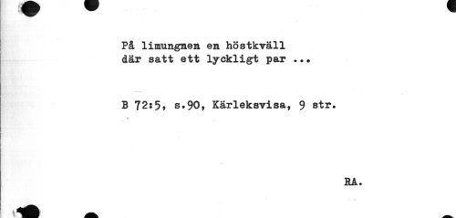 //// På limungnen en höstkväll där satt ett lyckligt par .•• //// B 72:5» s.90, Kärleksvisa, 9 str. //// v //// RA. //// i ^^ _ ////